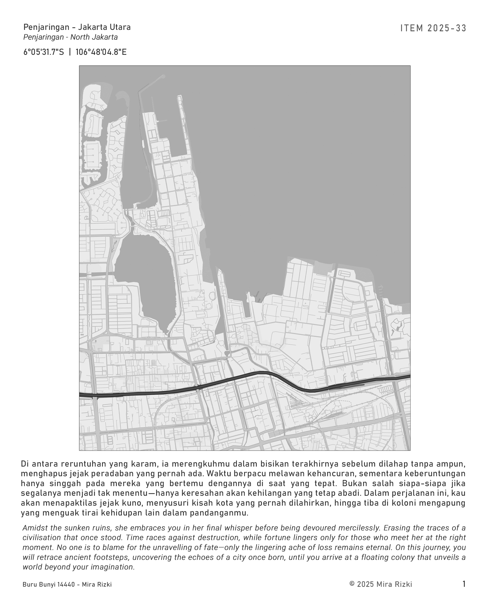 Muara Angke is a manual instruction guiding you through a journey —leading to a listening point of a soundscape that will soon disappear in years. The work is a simple way of documenting my fondness for Jakarta and its stories in the past.